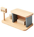 Smart Liewood wooden toy in natural wood and blue, shaped like a cash register.