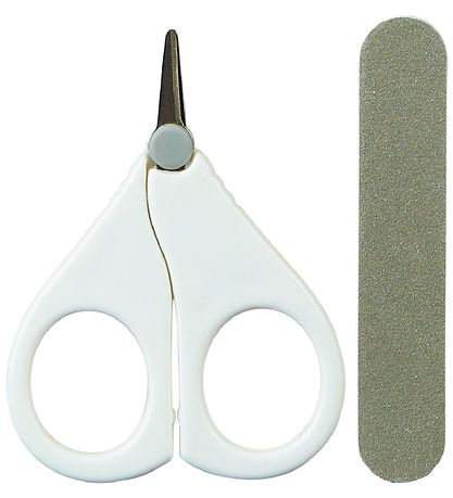Beautiful Mininor nail scissor in white and a hood and a nail file for good nail care are included.