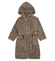 Beautiful Müsli bathrobe in dusty brown with a pattern of embossed stars and cute bunny ears on the hood.