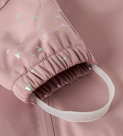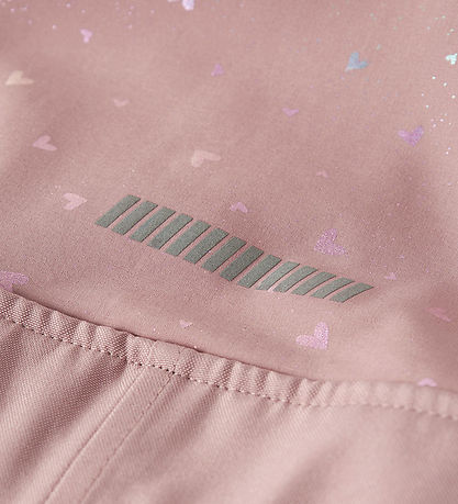 Lovely Name It softshell suit in dusty pink with an allover print of hearts in shiny, iridescent colours.