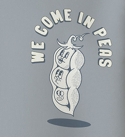Charming Name It t-shirt with short sleeves in a blue shade, adorned with a fun "We come in peas"print on the front. This t-shirt from Name It combines style with a playful approach to fashion.