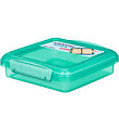 The Sistema lunchbox has a smart lid, which closes with a special clip on one side. Inside, the lunchbox has a large Rum, with two smaller Rum on one side. In the large Rum, the lunchbox has plenty of space for, for example, a salad, while accessories and dressing can be in the smaller Rum and the associated extra container.