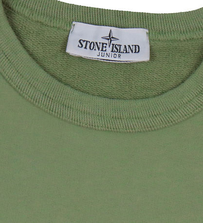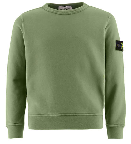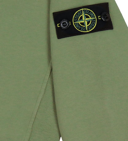 Smart Stone Island sweatshirt in dusty green, and at the top of the left sleeve the iconic logo badge is Fast with buttons.