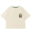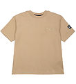 Beautiful The New t-shirt in a dusty pink shade with a in glitter print on the left chest of a flower and the text "Made With Love ". On the back there is a large in glitter print of a rainbow, flowers, hearts and the same text. The New t-shirt has a loose fit with a round neckline and short sleeves.