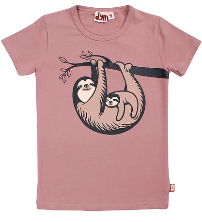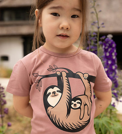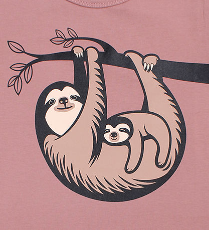 Beautiful ANIMAL t-shirt in vintage pink, and on the front there is a large print in brown shades with a sloth with a baby on its belly.
