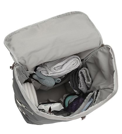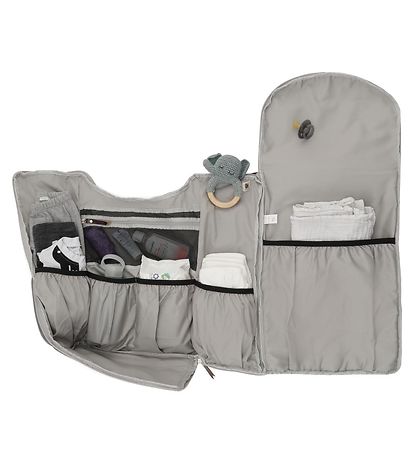 The Baby Dreamerchanging bag is opened at the top with a zipper, which can also be zipped up so that the bag can be folded out completely. Inside, the bag has a lot of nice pockets, with room for a lot of baby's puzzles. The bag comes with two good padded adjustable shoulder straps, as well as a strap at the top so the bag can be worn both on the back and in the hand. A smart adjustable strap is also included which can be attached to the side of the bag, so that it can also be carried as a cross body bag or put on the pram. On the front is a practical little pocket with space for a lot of small things, the pocket closes with a zipper.