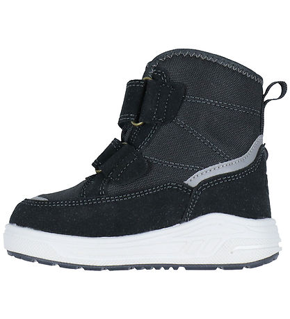 The Color Kids winter boots have a medium-high shaft that goes up above the ankles. They are tightened at the front with two wide Velcro straps, and at the back there is a strap that makes it easy to put the winter boots on. The Winter boots have a Fast heel and toe cap, which gives the feet good support. The inside is lined with textile, and along the edge of the shaft there is black, faux wool. There are removable insoles at the bottom. The Winter boots have lightweight outsoles in white and dark grey with a good tread pattern under the bottom.
