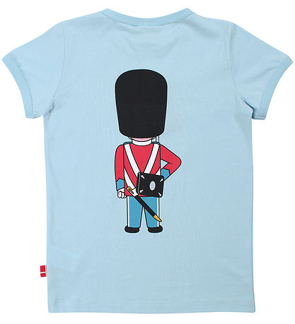 Charming Danefæ t-shirt in a light blue colour. The T-shirt has a large print of a Danish royal lifeguard on the front, adding a playful and classic element to the design.
