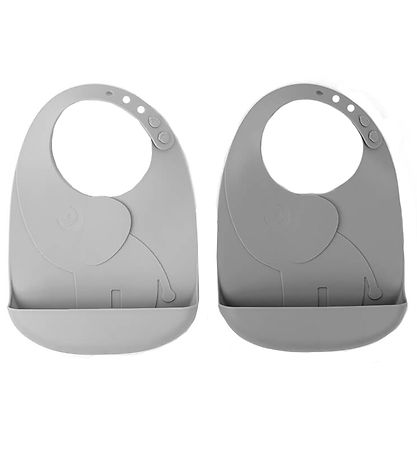 Nice Done by Deer bib sold as a practical 2-pack in grey and dark grey, both with the elephant Elphee on the front.