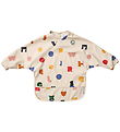 The Filibabba apron has long sleeves and opens at the neck with practical velcro. There is a pocket at the bottom at the front to collect spilled food and drinks. The arm openings have narrow elastic edges and the inside is soft lined.
