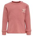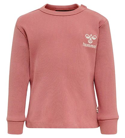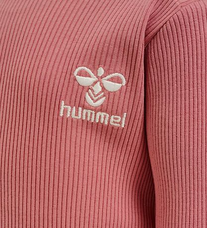 Beautiful Hummel blouse in a pink ribbed structure, with the brand's name and logo embroidered on the left chest in white.