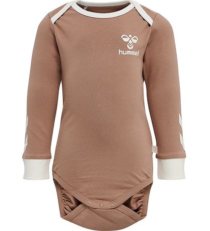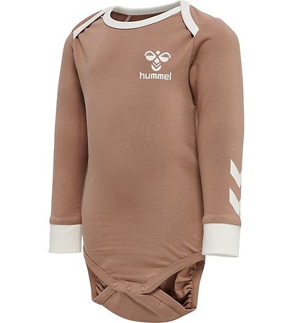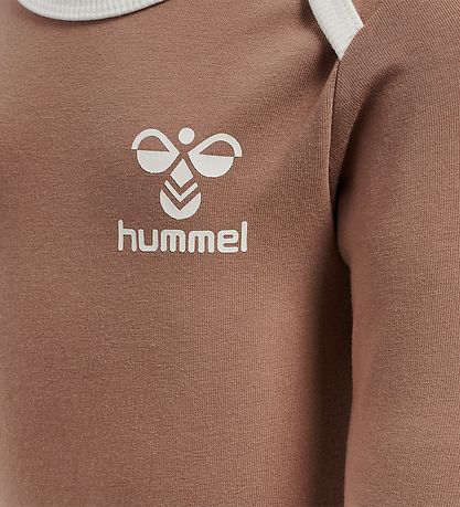 Delicious Hummel bodysuit in beige with a print on the left breast of the classic Hummel- bee in white. On the sleeves there are two white Hummel- shevrons.