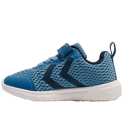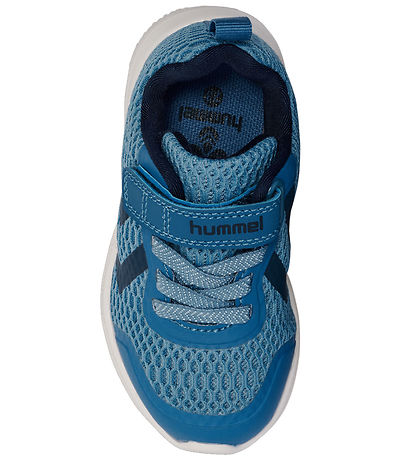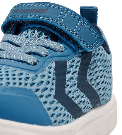 Beautiful Hummel shoes in blue mesh with dark blue logos on the sides and white outsoles.