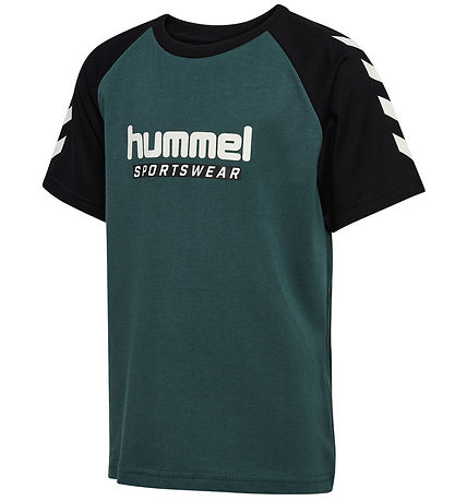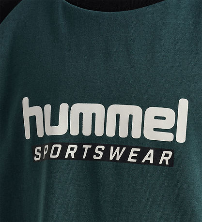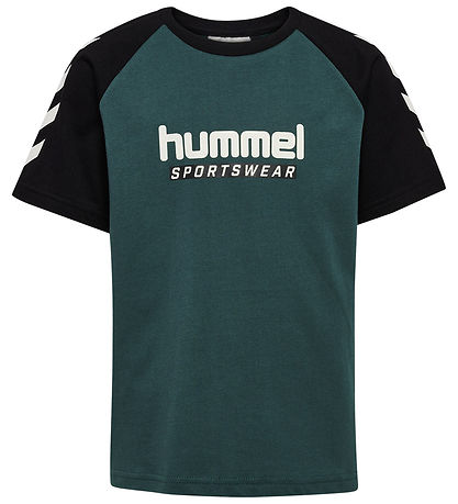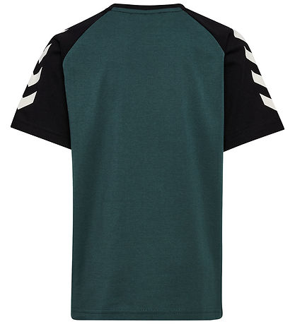 Smart Hummel t-shirt in a blue green shade with black sleeves.