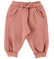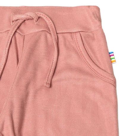 The Joha trousers have a wide elastic edge at the waist with decorative drawstrings at the front. There are two open pockets at the front on the sides, and the trousers are made of a soft and stretchy bamboo quality.