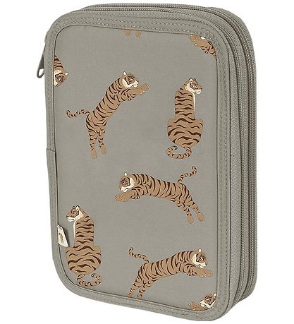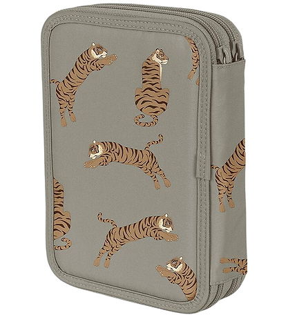 Beautiful Konges Sløjd pencil case in a warm, green shade with a smart tiger print.
