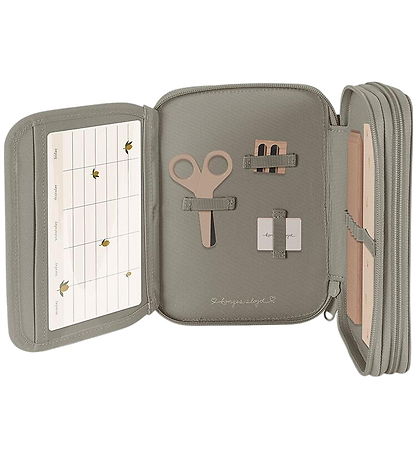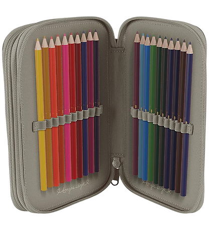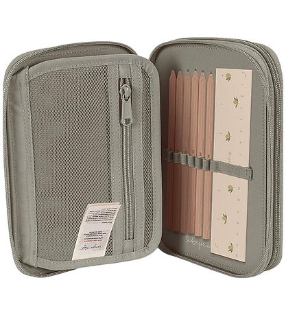 The Konges Sløjd pencil case has a square design and includes these writing utensils: