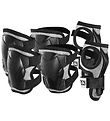The Konges Sløjd protection set protects the exposed areas of the kid when the kid is out on rollerskates, scooter, skateboard or riding a balance bike. The leg or arm is passed down through the opening, and then the different parts can be Fast with wide elastic bands with Velcro closure. The Knee and elbow protectors have a soft polyester backing so that the straps do not irritate the skin.
