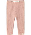 Elegant Lil' Atelier leggings in a soft pink shade and with vertical hole patterns that create a beautiful effect. The Lil' Atelier leggings have an elastic waist that ensures a comfortable fit.