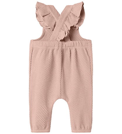 Elegant Lil' Atelier overalls in a soft, pink shade. The Overalls have a lightly structured pattern that gives a discreet but stylish look.