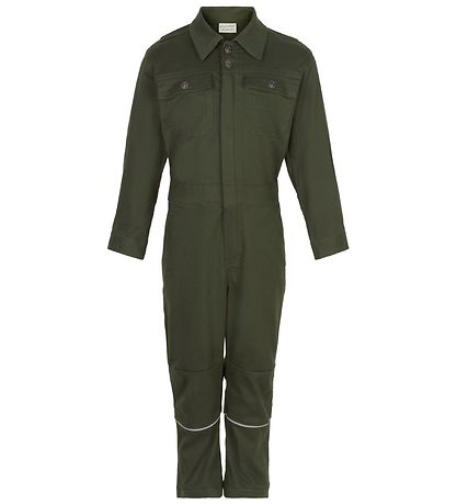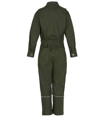 The work suit has a folded collar and slits at the sleeve ends, which can be closed with push buttons. Around each trouser leg there is a reflective band at the bottom, so the child is easily seen when it is outside in the dark hours.