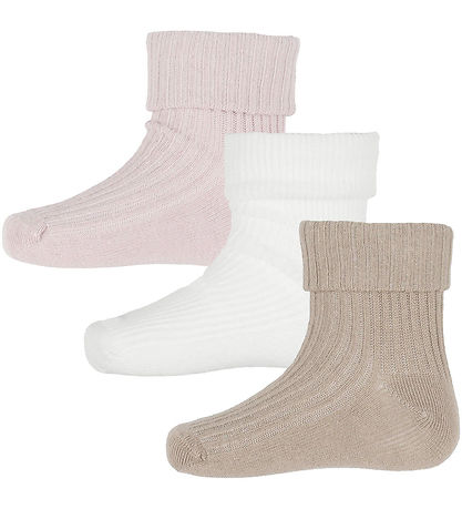 Beautiful Minymo socks sold in a 3-Pack with beige, white and pink. The Socks have a classic rib structure and a soft edge that provides a comfortable fit for little feet.