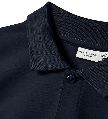 Smart Name It polo in deep navy blue. The polo has a classic collar with two buttons at the front and short sleeves.