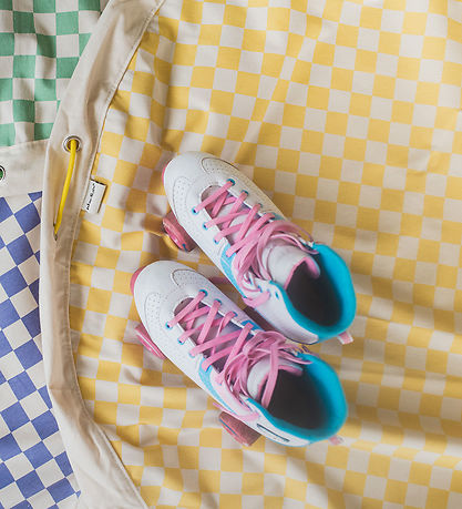 Beautiful Play&Go play mat in white with a print of yellow checs on one side.