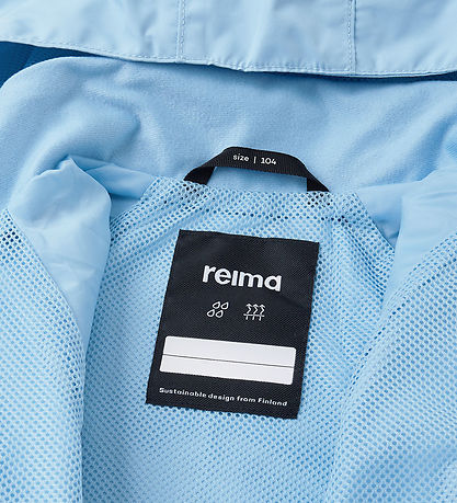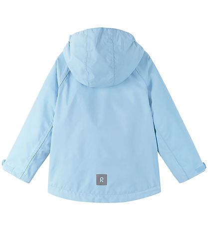 Cool Reima lightweight jacket in light blue with a logo as a reflex on the left shoulder and at the bottom of the back.