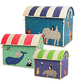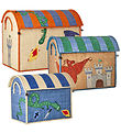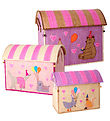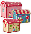 The storage baskets have handles on the sides so they are easy to move around, and they can be stored inside each other from largest to smallest. The storage baskets can be used both for storage but also as playhouses.
