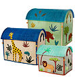 The Rice storage baskets each consist of one large compartment with room for e.g. soft toys, toys or other and opened with an attached lid. The lid has cords at the corners that hook onto a bead when the lid needs to be kept closed.