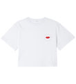 The Stella McCartney Kids t-shirt has short sleeves and a narrow ribbing at the neckline, and it opens at the left shoulder with push buttons.