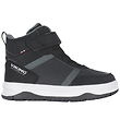 Stylish Viking winter boots in black with a white midsole and black bottom.