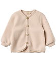 Practical Wheat Cardigan in a brownish shade in warm wool fleece, with button closure and long sleeves. The Cardigan has a simple and timeless style that makes it a safe choice for any wardrobe.