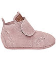 Sweet Wheat soft sole leather shoes in pink suede with an allover flower print in a slightly darker shade.