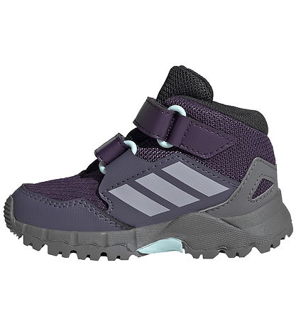 Great adidas Performance shoes in a deep dark purple colour with "Terrex" in white and a logo in light grey on the outside, as well as a grey set around the heel. Perfect for kids who love comfort and style.