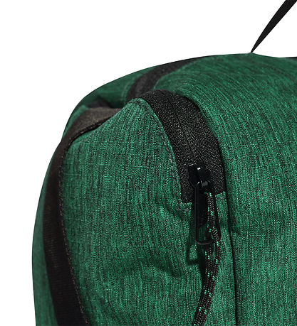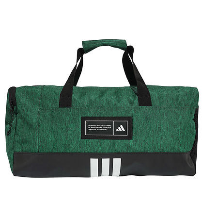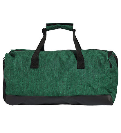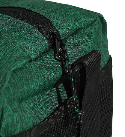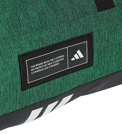 Practical adidas Performance sports bag in shades of green with logo prints on the front in white and black.