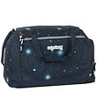The adidas sports bag consists of a large Rum that opens at the top. Inside there is a little open pocket on one side and a larger open pocket on the other side. Outside there is an open mesh pocket on one end of the bag and on the other end there is a pocket with a zipper closure.