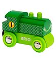 The BRIO streamlined train has 3 parts and the train is designed to be fast, with an aerodynamic design and 14 wheels.
