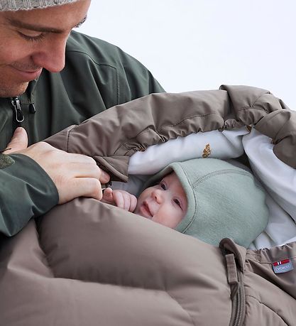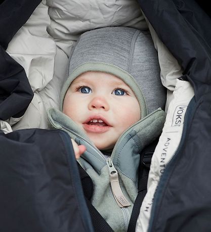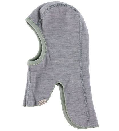Fine Voksi balaclava with a reversible design in dusty green on one side and melange grey on the other.