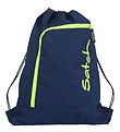 The Ergobag gym bag is closed at the top by tightening the laces. There is a smaller Rum at the front, which is closed with a zipper. The gym bag can be clicked Fast the outside of the Ergobag Prime school bags with the click buckles at the top and bottom of the shoulder straps.