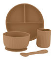 The dinner set is made of food-approved silicone, which is free from BPA. The set is dishwasher, microwave, oven and freezer (max. 200 degrees).