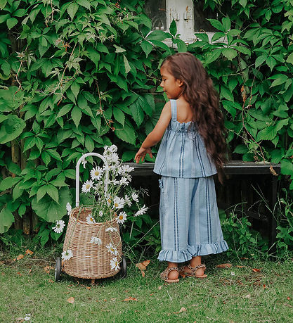 Beautiful trousers from Fliink with an elegant design consisting of vertical stripes in different shades of blue and discreet patterns, which create a unique look. The Fliink trousers have a relaxed fit and elastic at the waist, which ensures a good fit. At the bottom, the trousers are finished with a decorative ruffle edge, which adds extra flair.
