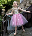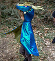 The Great Pretenders costume consists of a hairband and a cloak. The hairband is black with black feathers and red feeler horns with glitter. The ladybug coat is red with large, black dots with glitter. It closes with velcro at the neck. The coat is in soft velour.