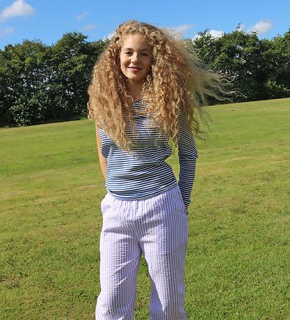 Nice Grunt blouse with narrow, horizontal stripes in blue and white with ribbed structure.