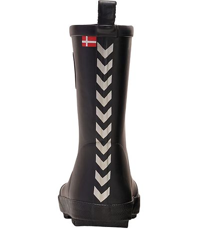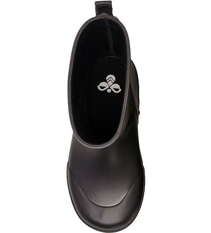 Fine Hummel rubber boots in black with a Hummel bee on the outside of the shaft.