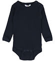 Lovely Joha bodysuit in navy blue in fine rib quality. The Bodysuit has a round neckline with push buttons at the left shoulder and between the legs. It has long sleeves and is made of a soft and elastic quality that ensures comfort all day long.