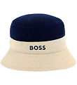 Beautiful Katvig bucket hat in a classic combination of white and navy in wide stripes. The Bucket hat is designed to protect against the sun's rays and adds a stylish element to outdoor activities.