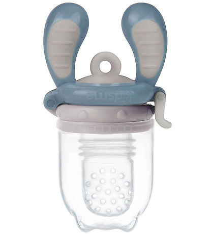 The food feeder consists of a silicone pacifier with small holes in which you can put different food items. When the kid chews on the dummy, the food is pushed out through the holes. Try e.g. with melon, banana, boiled cauliflower and the like. The container has two large handles that the baby can easily grasp.
