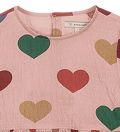 Charming blouse from Konges Sløjd in pink with long sleeves and a colorful heart print. The Blouse has a round neckline and elegant pleats at the waist, which gives a slightly wavy effect.